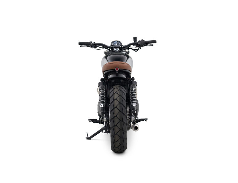 Finished in a sleek chalk grey body paint, this bespoke build features a hand-stitched leather seat, wire-spoke wheels, and a custom-tuned exhaust that delivers a rich, throaty growl. Powered by a 1200cc parallel-twin engine, it boasts 80 horsepower and 77 lb-ft of torque, paired with an upgraded suspension and premium Brembo brakes for enhanced handling and stopping power. Whether carving through mountain roads or cruising through town, the Man O’ War is a bold statement of speed, craftsmanship, and timeless style.